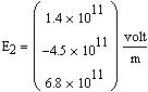 The flux density will have the same normal (x) component as that in region 1, and the dielectric constant times the same tangential (y and z) components of E.