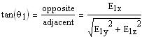 To find the angles, use the dot product method shown in Problem 1.3. The angle we are looking for is 90° minus the angle between the normal axis and the fields.