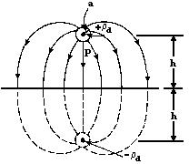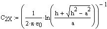 Observe that the capacitance per unit length for the whole source-image system (and more generally, for any pair of parallel cylindrical conductors with center-to-center separation 2h) is one-half the value found above, since it contains the same charge, but twice the voltage drop.