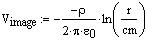 To find the potential due to the image conductor, find the distance from the imaginary image line charge to any point on the circumference of the real conductor.